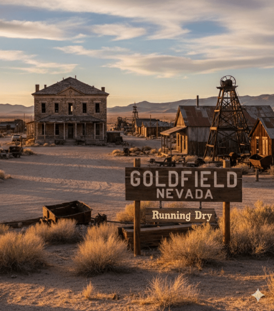 Goldfield, Nevada is a living ghost town on Hwy 95, roughly halfway between Las Vegas and Reno. The Town is surrounded by thousands of acres of high desert BLM land owned by the federal government which regulates mining activities. Water is a scarce commodity and mining requires water. Local governments can enter into agreements, but they have no control over federal land use. Only 200 or so residents live in Goldfield; however, water customers include schools, public buildings, commercial businesses, and seasonal residents, which adds to the total customer count. The town has no gas station though one has been constructed, and its opening has been delayed by separate water-related issues. Though the Town had plenty of water for growth prior to the agreement, it now faces a shortage, and the realization has come suddenly.