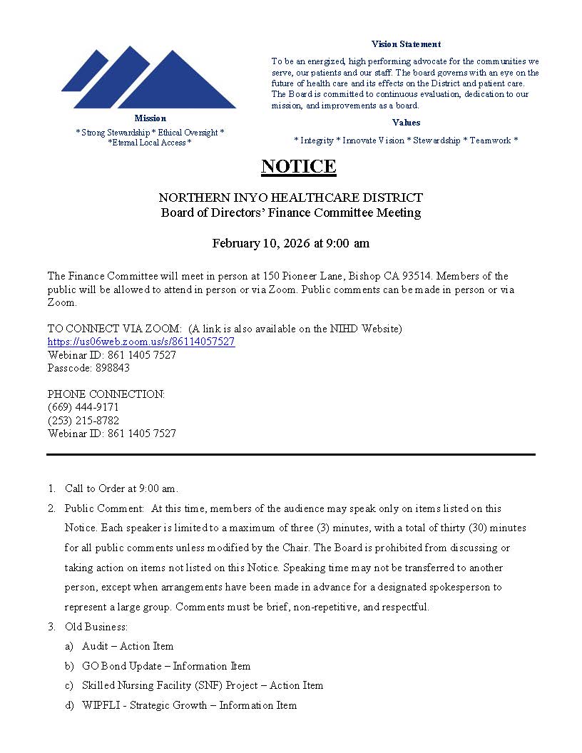 NOTICE: NORTHERN INYO HEALTHCARE DISTRICT