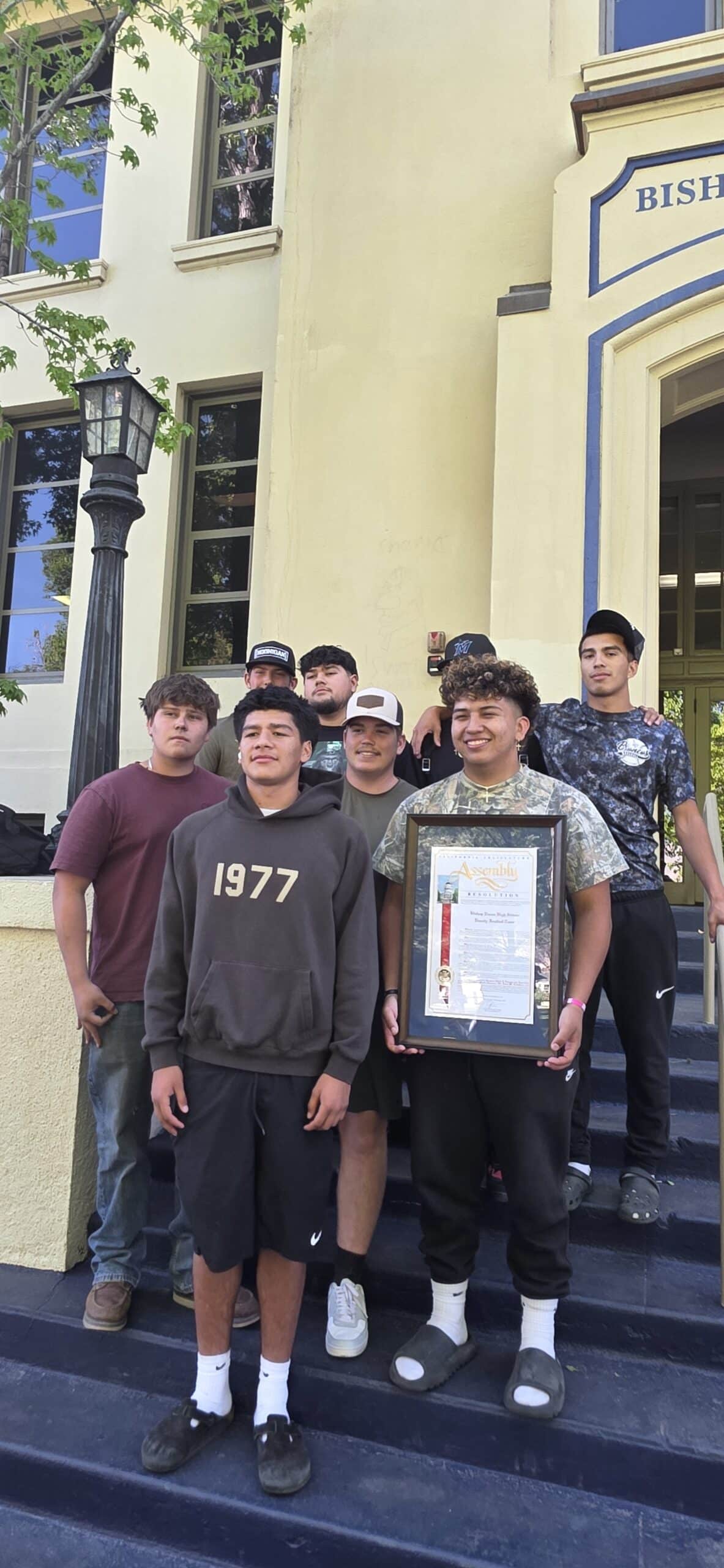 BISHOP, CA – The Bishop Union High School varsity football team received a prestigious honor this week as representatives from the California State Legislature visited the campus to present a formal resolution celebrating the team’s recent championship success.